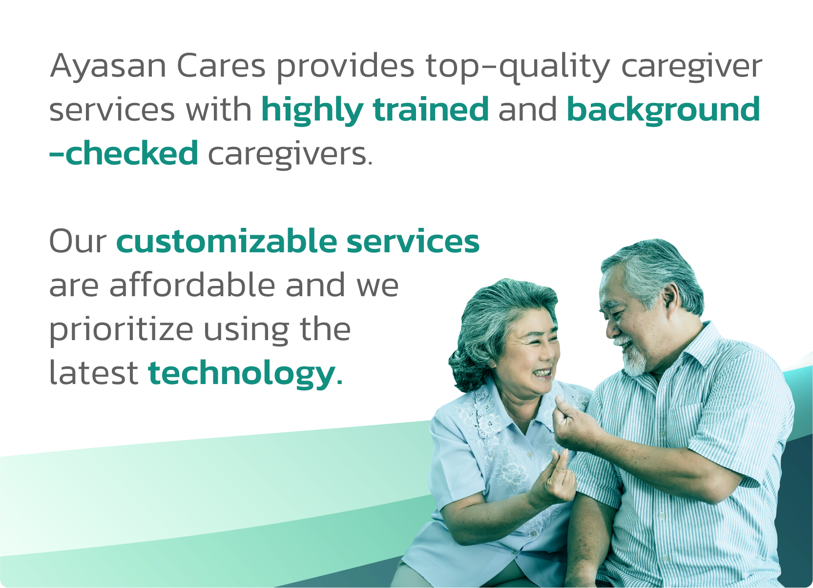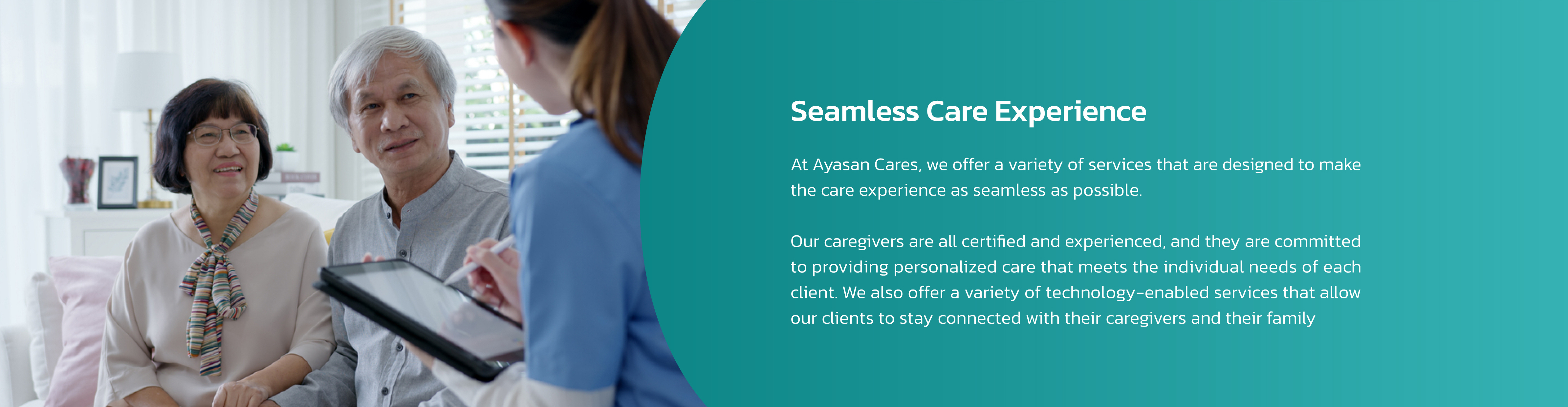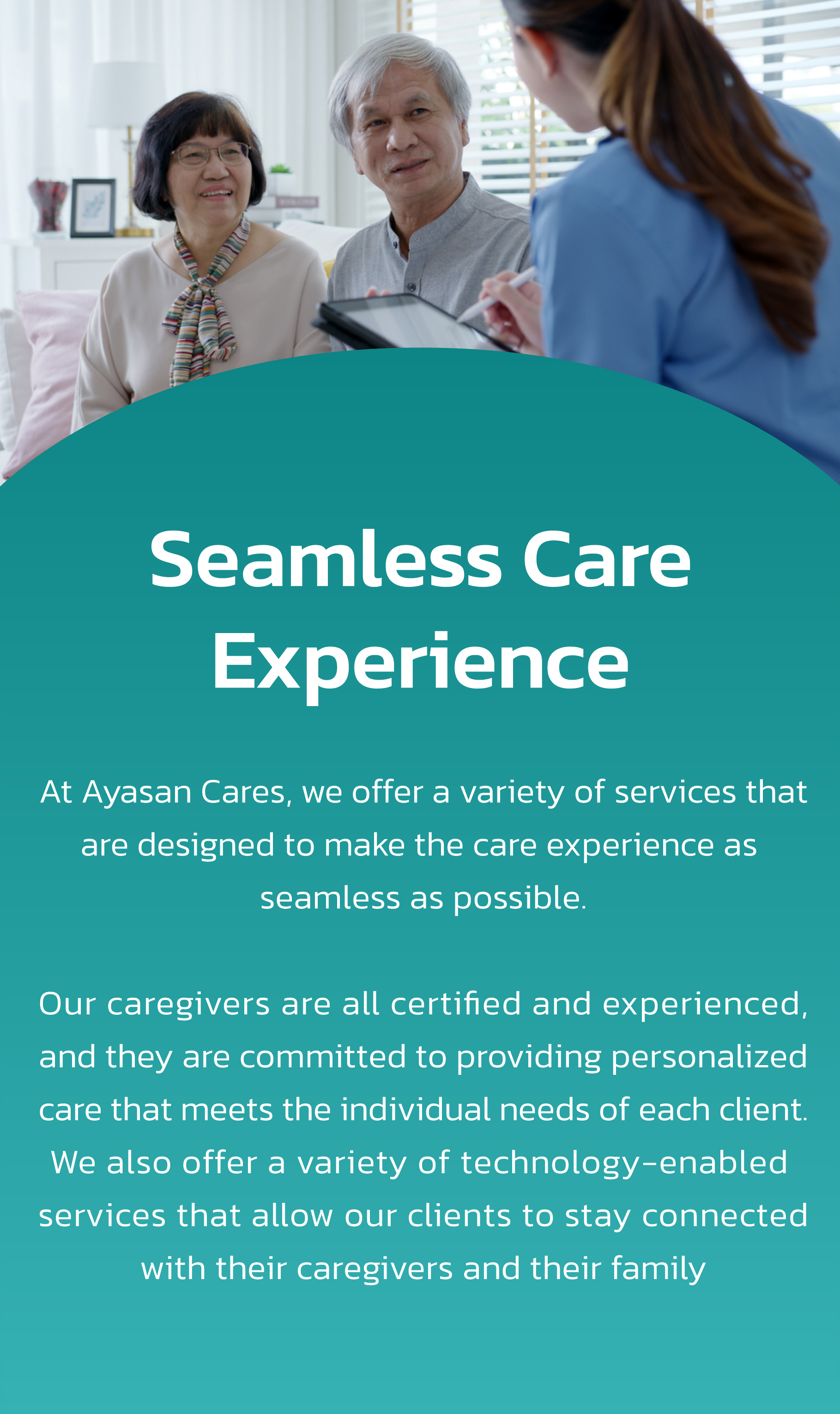 The duration of a Ayasan Cares elderly care visit starts from 3 months, depending on the family’s preferences and your loved one’s needs.