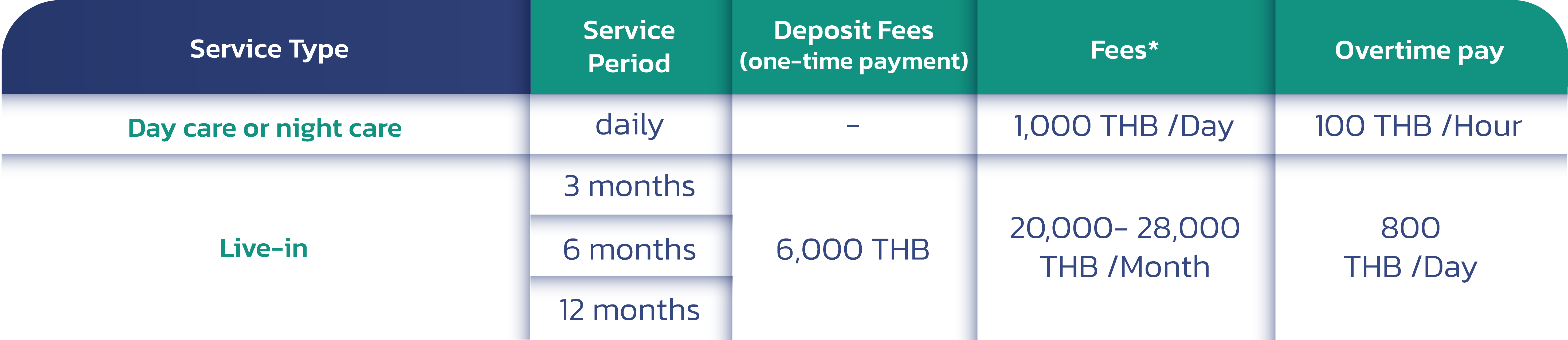 **Service Fees Included : Planning & Matching Service Fee, Careetaker Salary, Replacement Gaurantee, Device and Software*, Health-Check, Criminal background check, Uniform, and Interview Fee